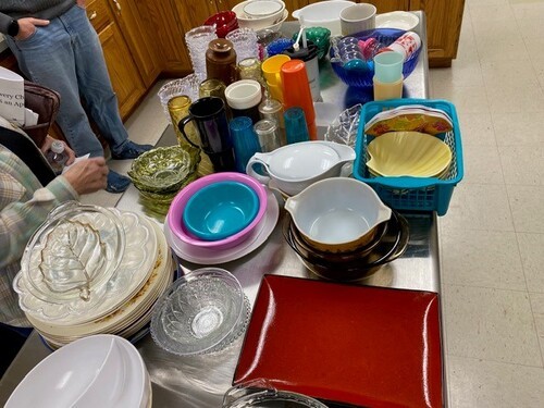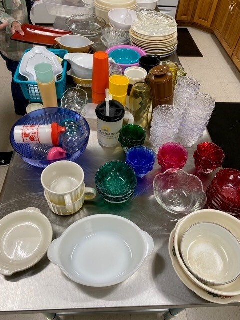 Dishes Left from Previous Church Dinners - Please come and get it if any of these items belongs to you!